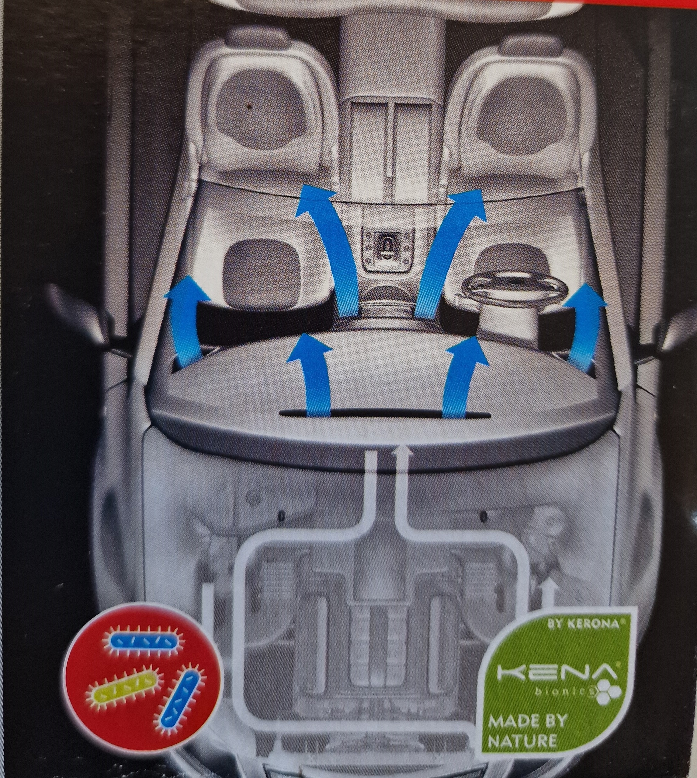 Bakterie i grzyby powodują nieprzyjemne zapachy w kanałach wentylacyjnych układu klimatyzacji oraz wnętrzu pojazdu. Formuła KENA Bionics z antybakteryjnymi jonami srebra zapobiega ponownemu pojawieniu się zapachów, a tym samym chroni przed reakcjami alergicznymi. Pozostawia długotrwały, świeży zapach, QUICK FRESH PURE zawiera środki antybakteryjne na bazie srebra. Podczas zabiegu jony srebra osadzają się na powierzchniach. Bakterie mające bezpośredni kontakt z powierzchnią są niszczone przez jony srebra co hamuje ich namnażanie.