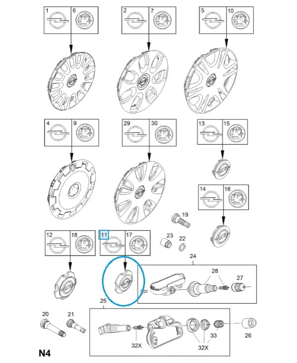 Kołpak felgi aluminiowej Corsa D