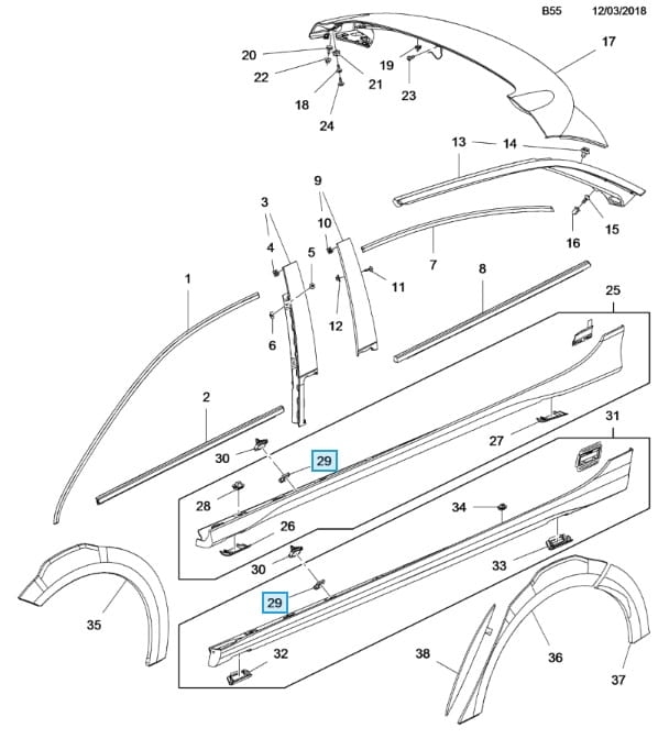 Komplet 10x spinek listwy progowej Insignia B