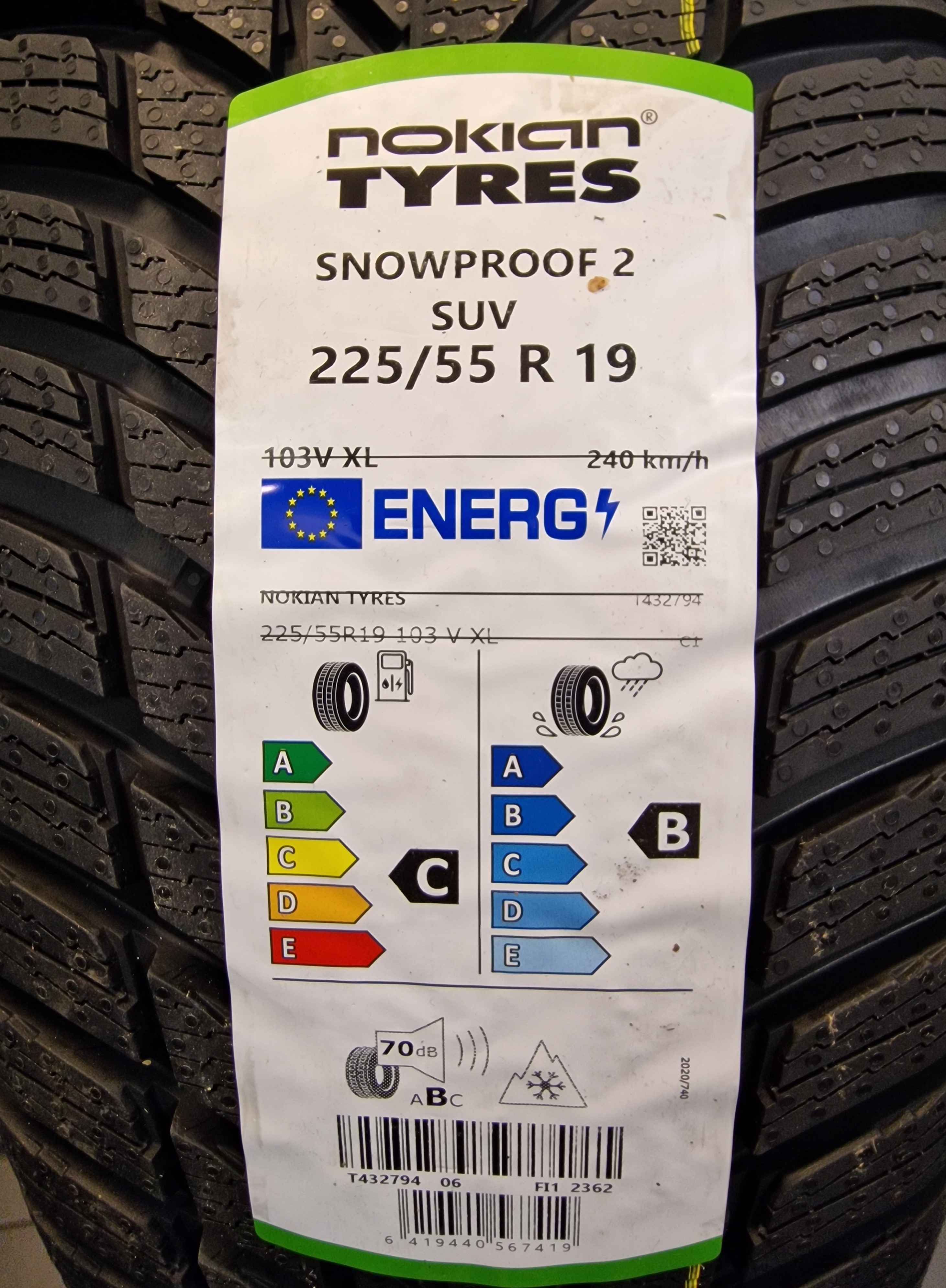 • 4 nowe 19 calowe opony zimowe Nokian WR Snowproof 2 SUV w rozmiarze 225/55R19 103V XL (klasa C, B, 70Db)