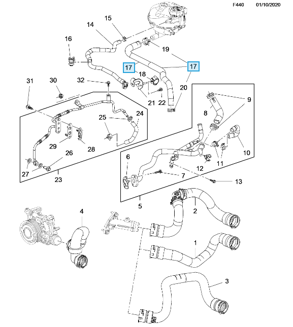 Przewód wodny zbiornika płynu chłodniczego Astra K