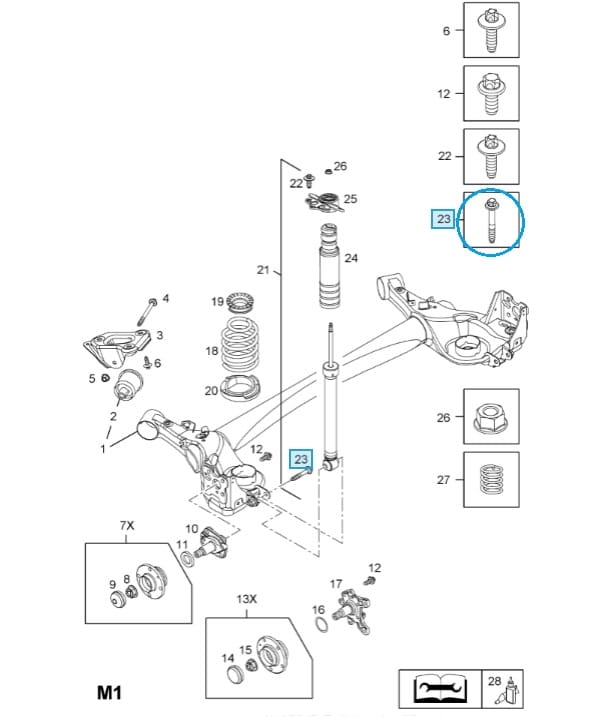 Śruba mocująca tylny amortyzator
