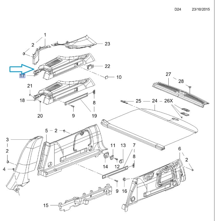 Wykończenie górne tylnej części samochodu Astra K