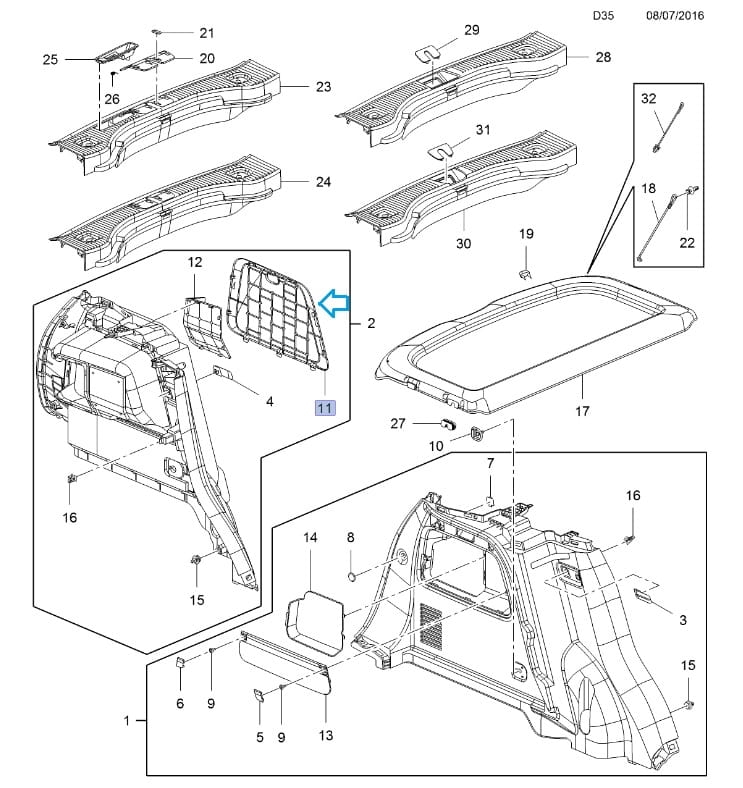 Nowe, oryginalne wykończenie boczka bagażnika