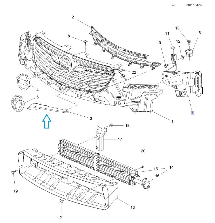 Wypraska przedniego grilla