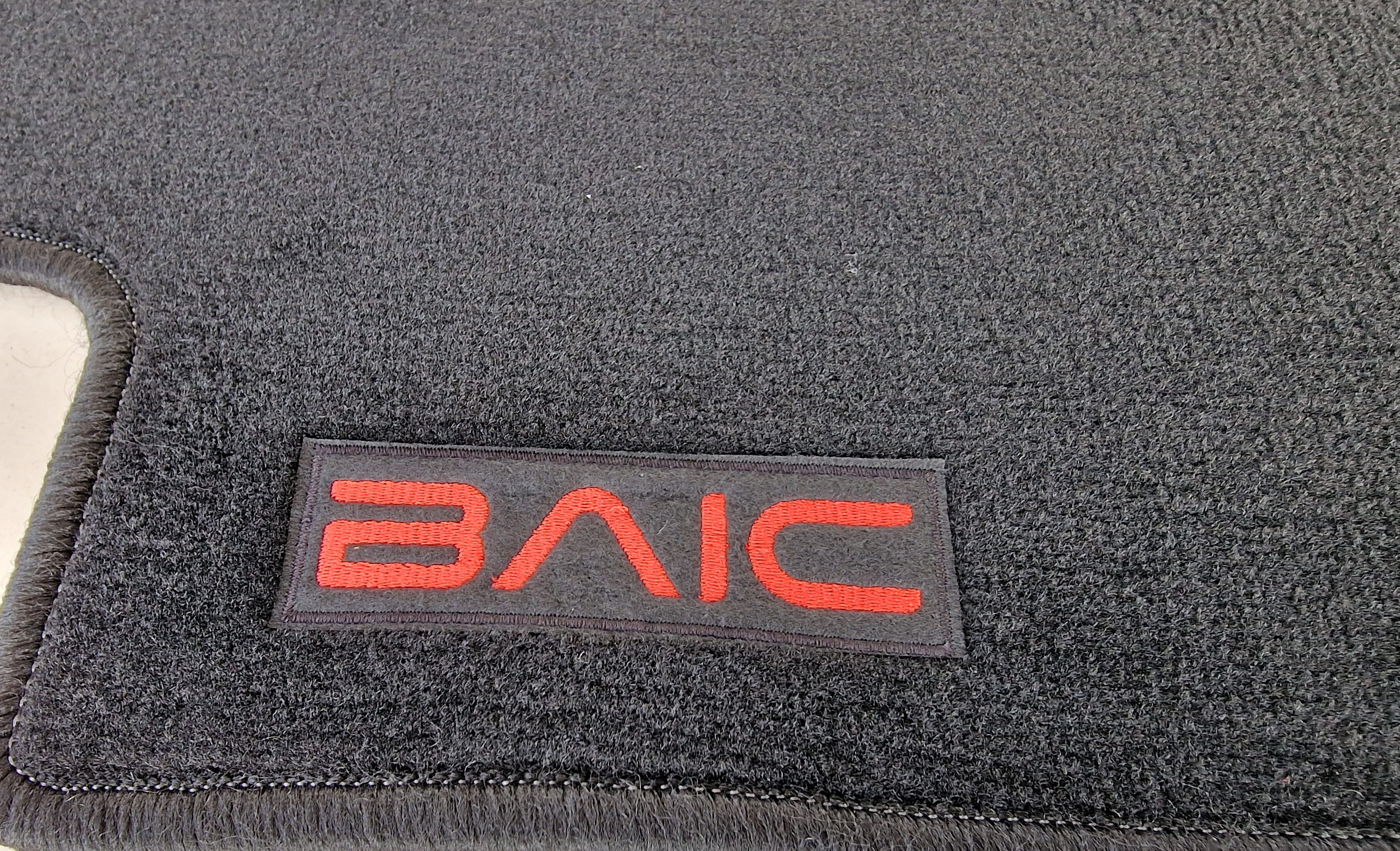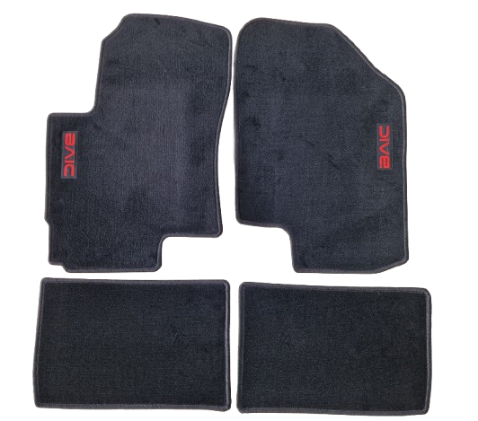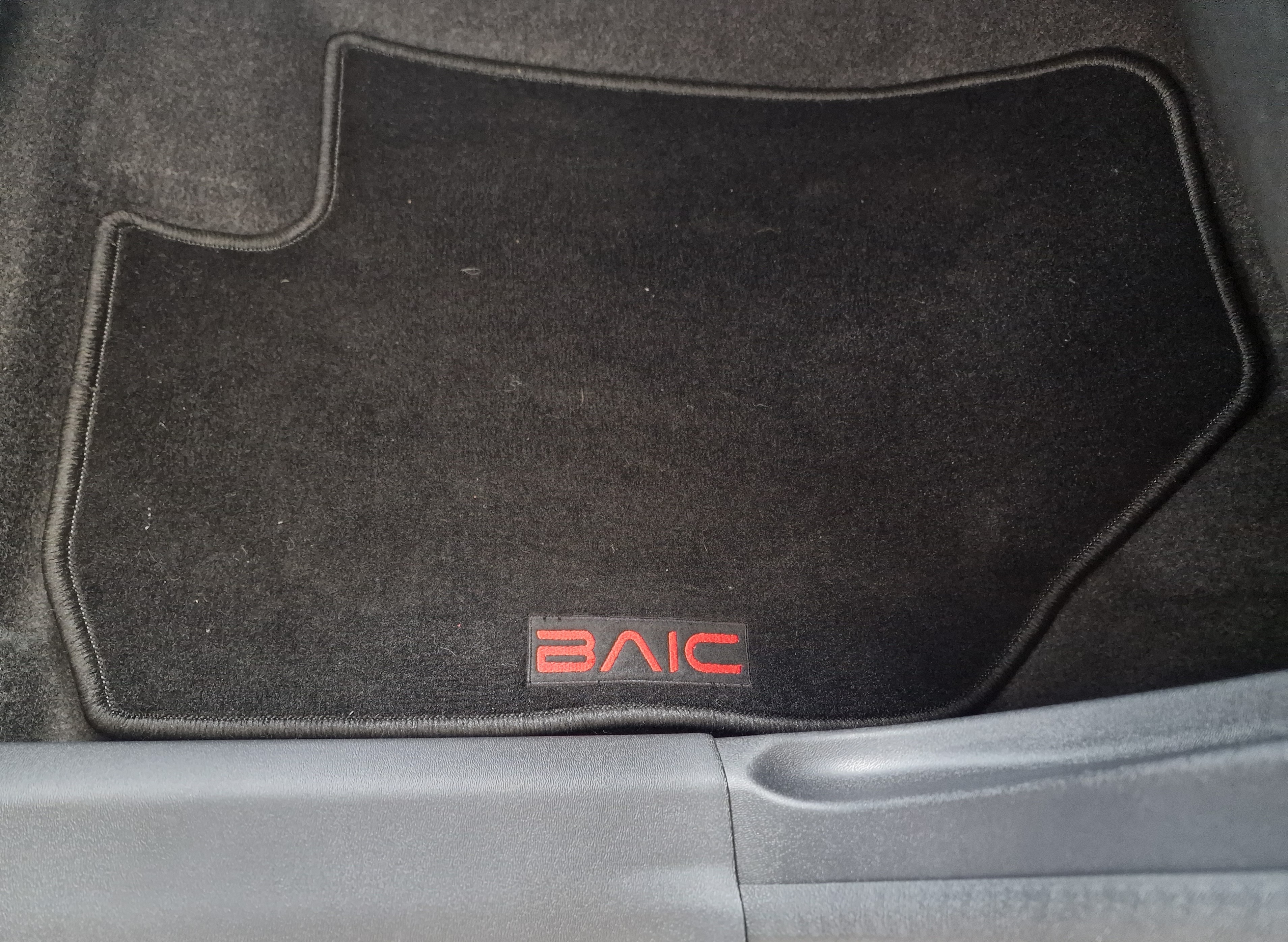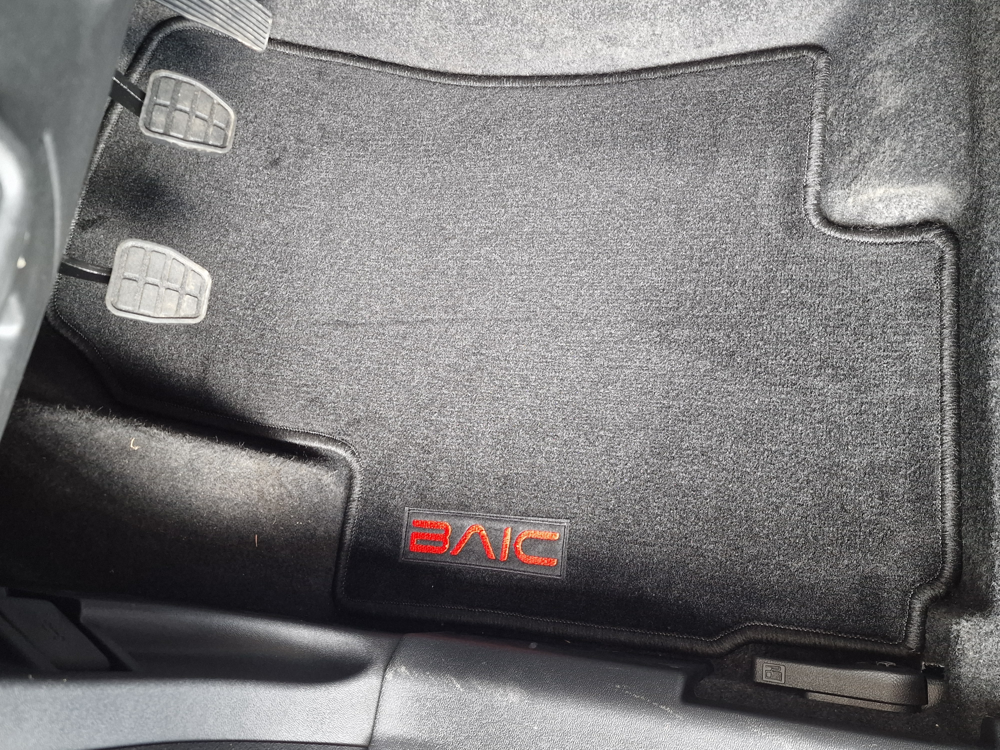 • czerwony napis BAIC na dywaniku kierowcy i pasażera