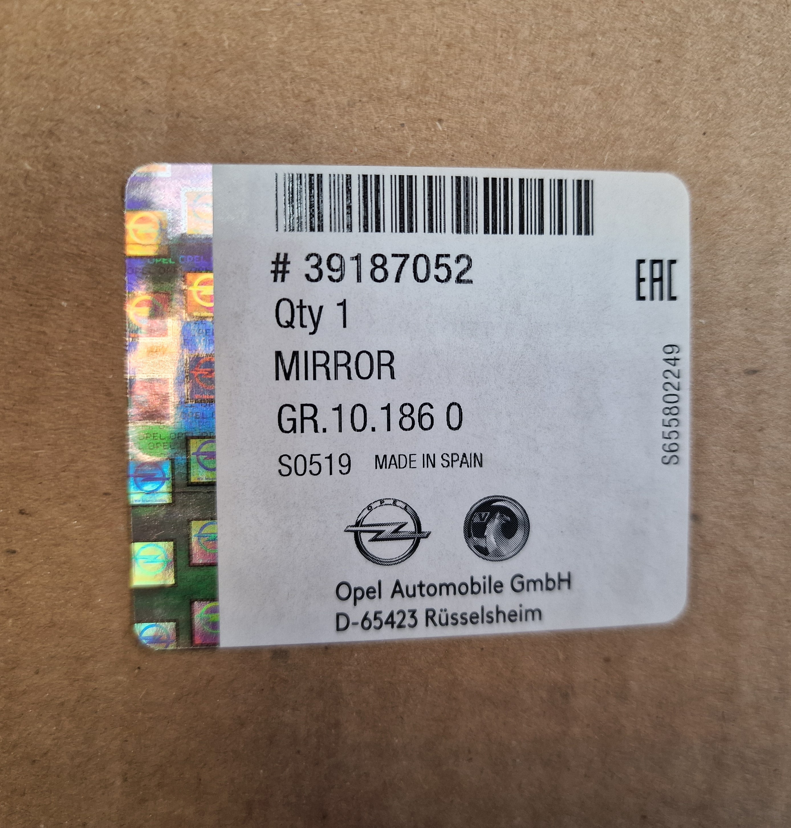 Nowy oryginalny wkład lusterka do samochodu Opel Corsa E