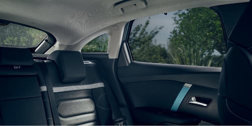 • Komplet 4 składanych zasłon przeciwsłonecznych do ustawienia i zamocowania na szybach drzwi tylnych i szybach bocznych tylnych.