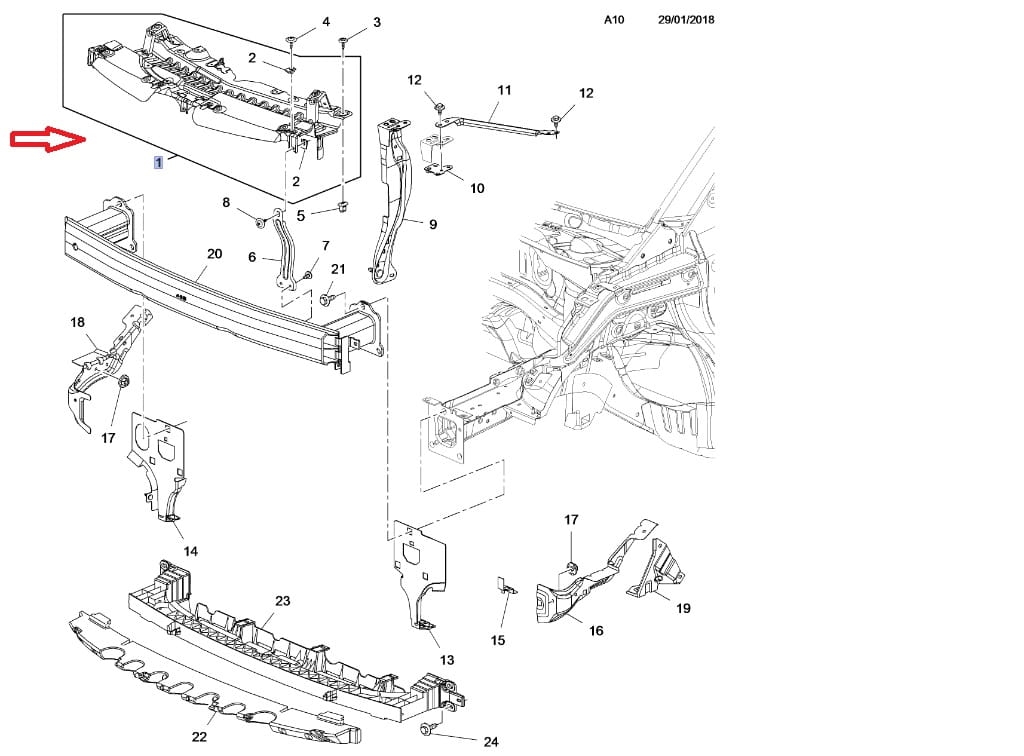 wspornik górny zderzak przód opel crossland x