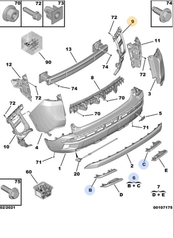 wspornik/ślizg zderzaka tył prawy peugeot 3008 od 2016r.